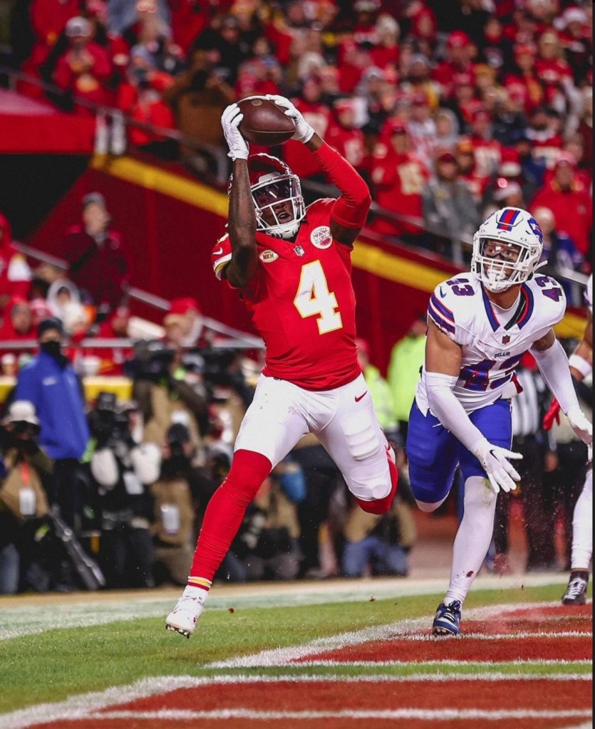 Kansas cada vez estaba más cerca. Mahomes, el arquitecto del juego, lanzó un pase magistral que surcó el aire como un cometido celestial, encontrando a Rice en la endzone. Aunque Buffalo hizo un gol de campo en el principio del tercer cuarto, los Chiefs respondieron con esta anotación para dejarlo 17-14.