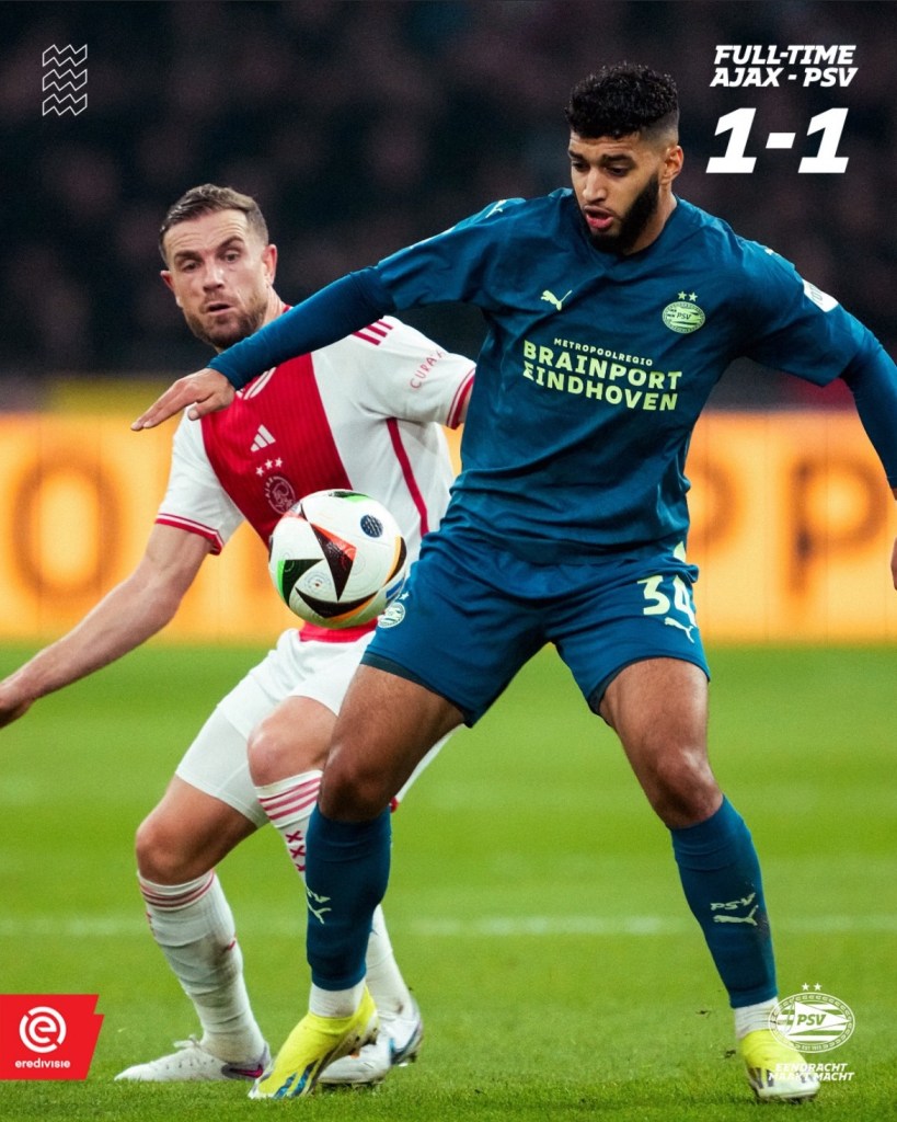 En un encuentro con muchas ocasiones pero poca contundencia, Ajax y PSV Eindhoven Igualan 1-1 en Amsterdan.