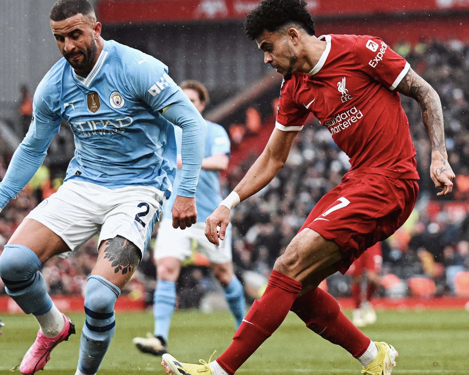 Tras el penalti, Ederson salió de cambio por el choque donde derribó a Núñez. Haaland fue inhabilitado por Virgil Van Dijk durante el encuentro y Luis Díaz falló en dos ocasiones aún cuando había quedado solo frente al arquero rival. Ambos equipos lograron frenar a las principales herramientas del contrario.