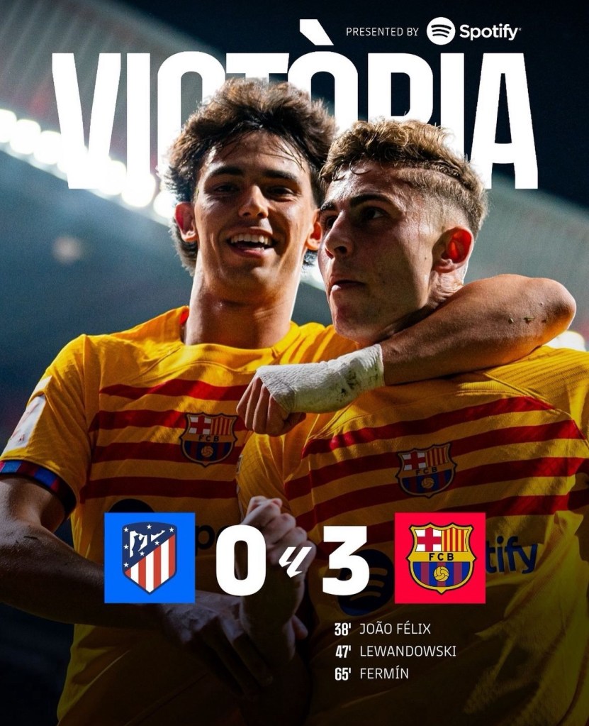El cuadro catalán derrotó 3-0 al Atlético de Madrid con las destacadas actuaciones de Joaõ Félix y Robert Lewandoski.