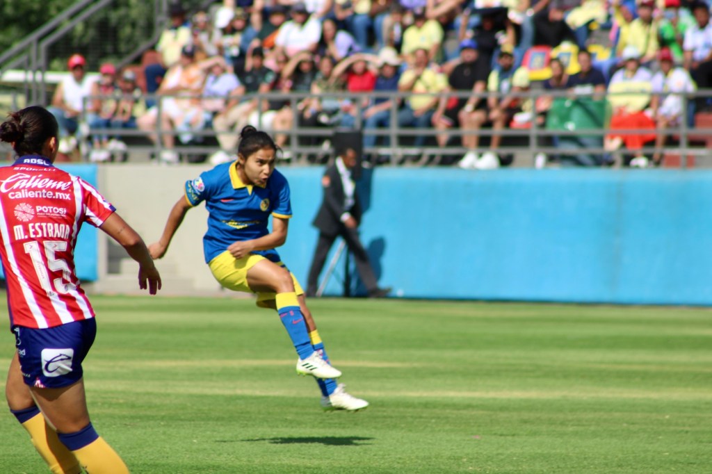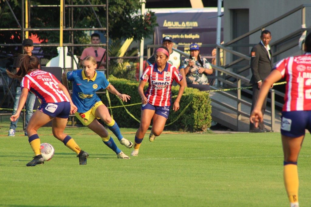Trudi Carter, jugadora del San Luis, no desperdició la oportunidad que le brindó la débil defensa del América y anotó el primer gol del partido en el minuto 11.