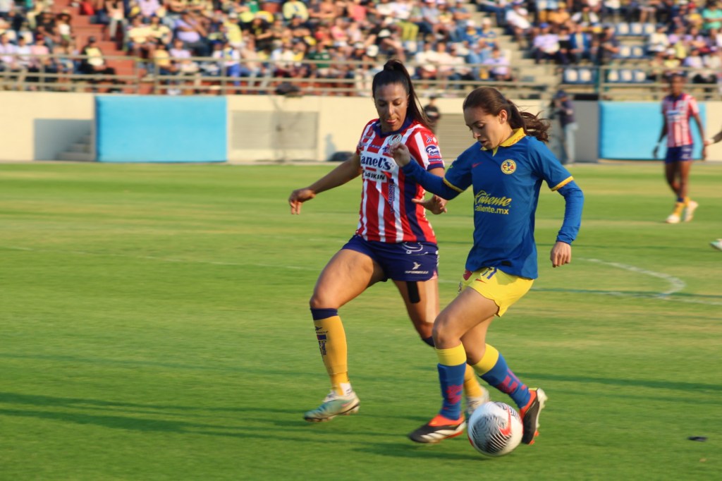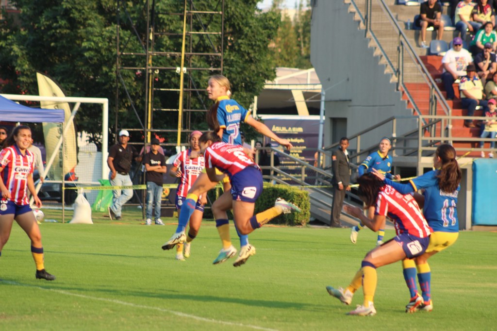 Las Águilas intensificaron su juego y lograron anotar un gol de cabeza a cargo de Jocelyn Orejel en el minuto 28 y así concluyó la primera mitad del encuentro sin más incidencias.