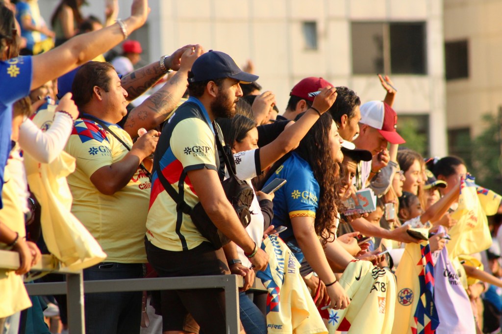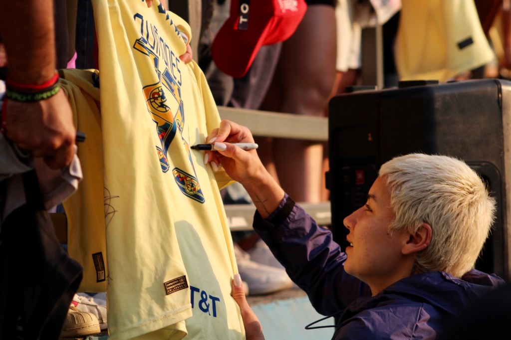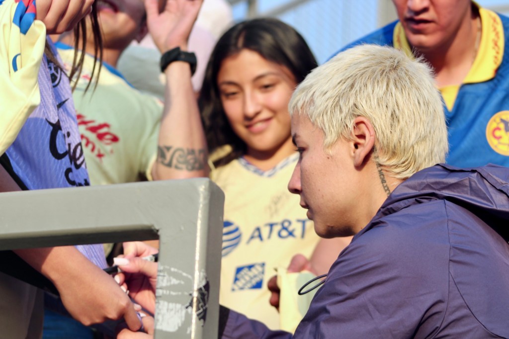 El partido finalizó y la jugadora del América Miah Zuazua se acercó a la tribuna con la gente para regalar fotos y firmas en las playeras de las aficionadas.