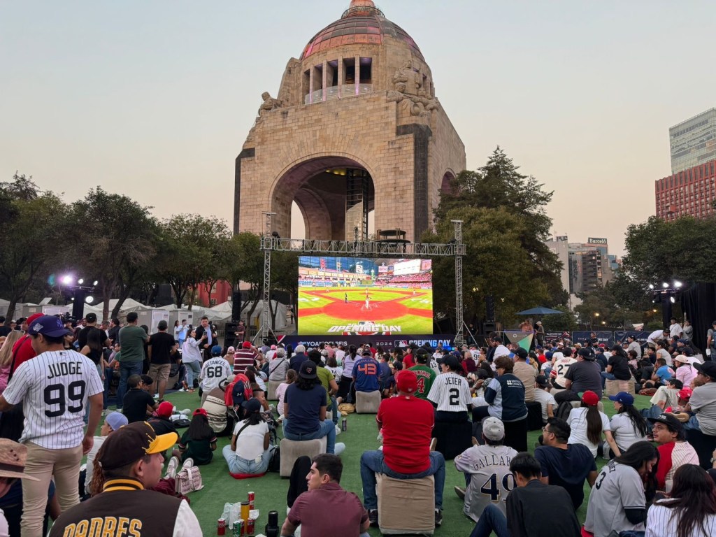 Bajo el cálido atardecer, la atmósfera vibró con entusiasmo en el monumento a la revolución, donde el Opening Day de la MLB cobró vida. La pantalla proyectó el encuentro entre los Astros de Houston y los Yankees de Nueva York, un partido que marcó el inicio de la temporada 2024 de la MLB.