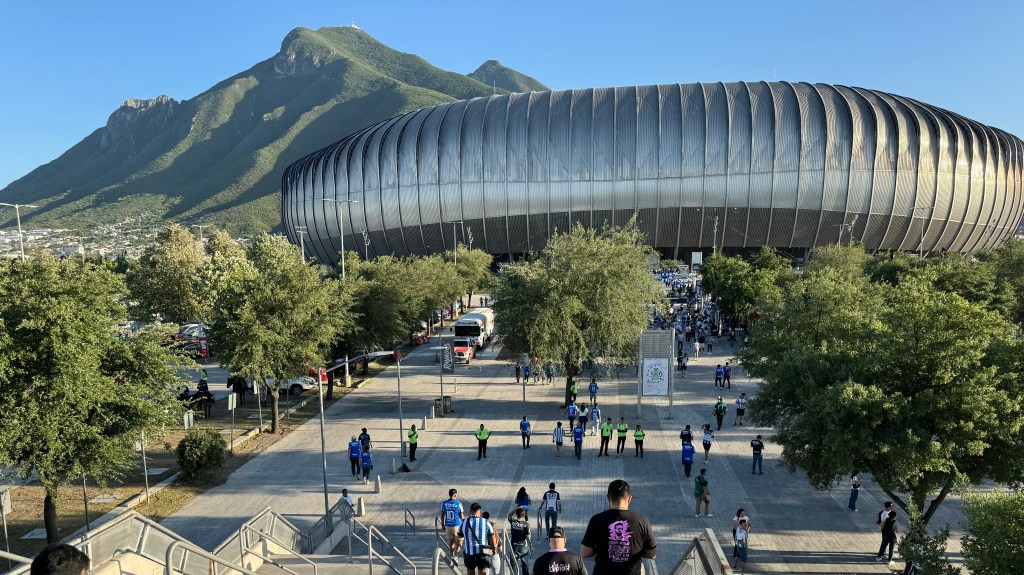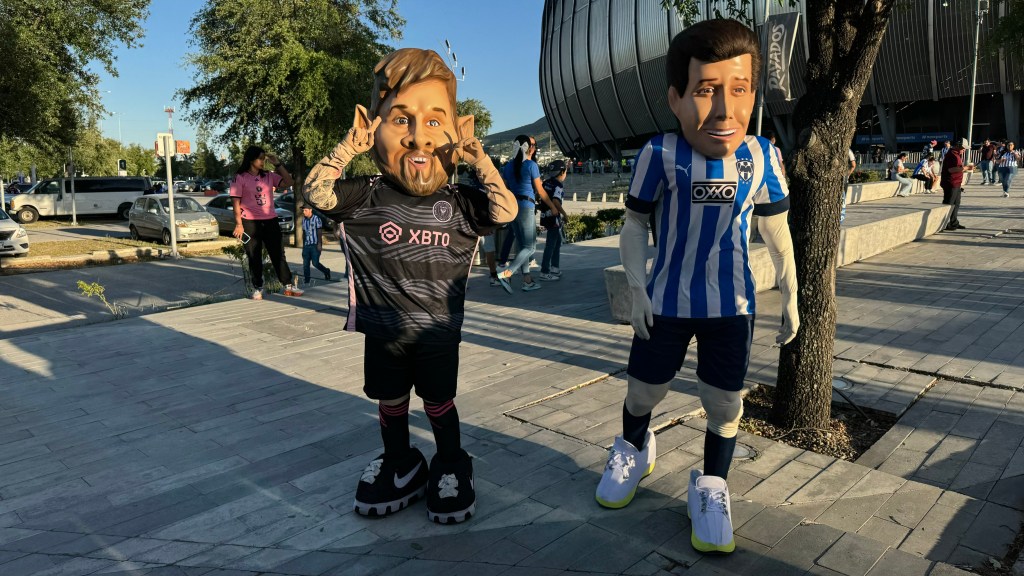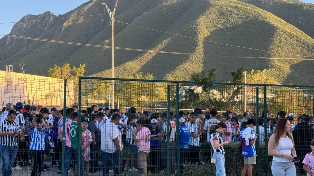Messi, el centro de atención, y Sergio Canales, estrella de Rayados, convivían con los fanáticos a las afueras del estadio, mientras otros preferían posar con sus bufandas del partido y con el Gigante de Acero en el fondo.