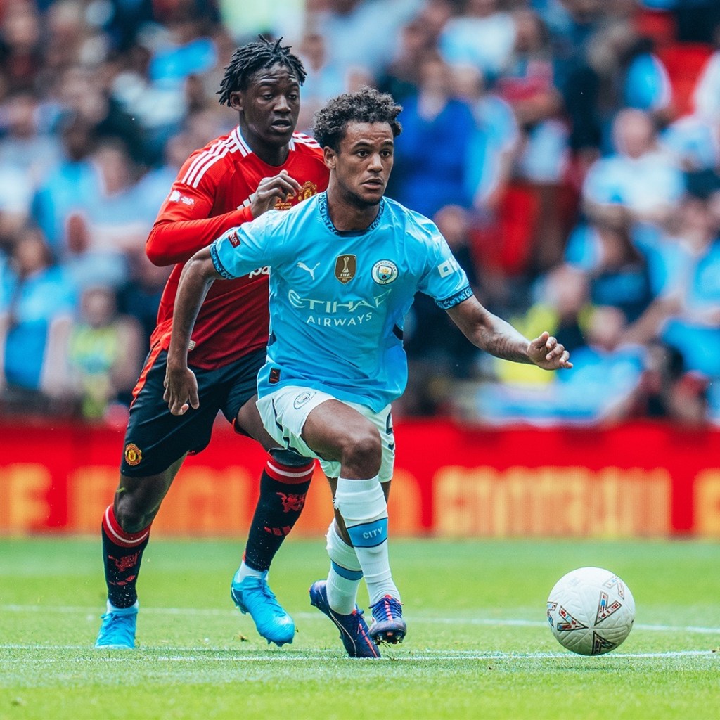 El estratega español Pep Guardiola incluyó a cuatro jóvenes de las categorías inferiores en el once titular. El más peligroso en los primeros 45 minutos fue Oscar Bobb, quien mandó un disparo cruzado al marco rival, aunque el balón pegó en el poste.