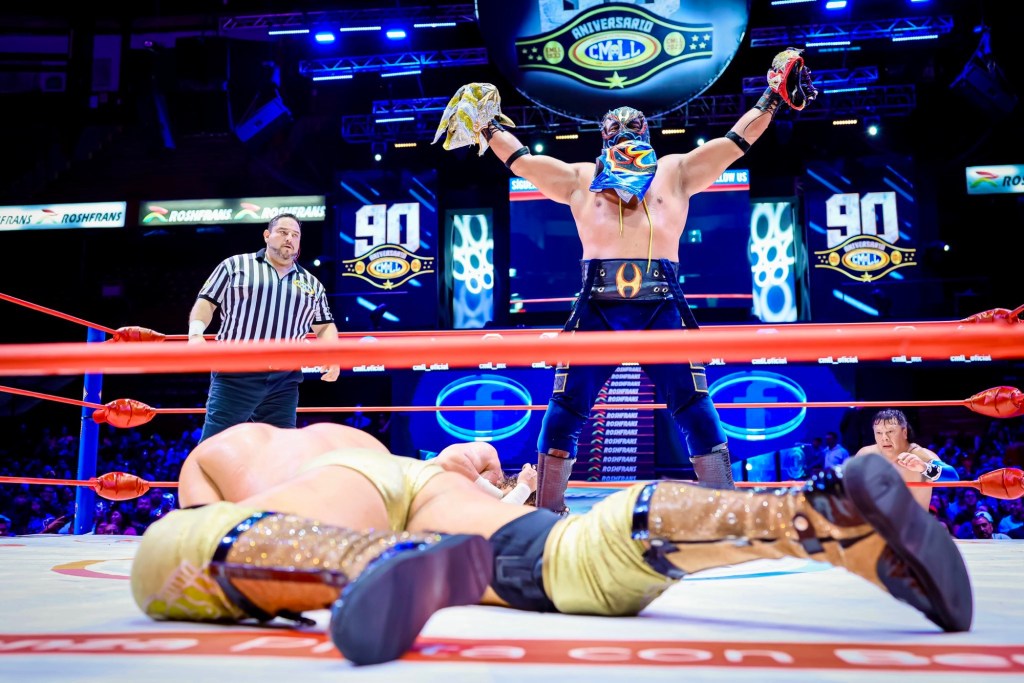 Hechicero no solo acaparó la atención en la Arena México, sino que también se apoderó de tres máscaras, incluida la de un compañero de lucha. Después de provocar la descalificación de su equipo, el gladiador lanzó una desafiante advertencia: “El 13 de septiembre, en el 91º aniversario del Consejo Mundial de Lucha Libre: ¡nosotros cuatro, máscara contra máscara!”.