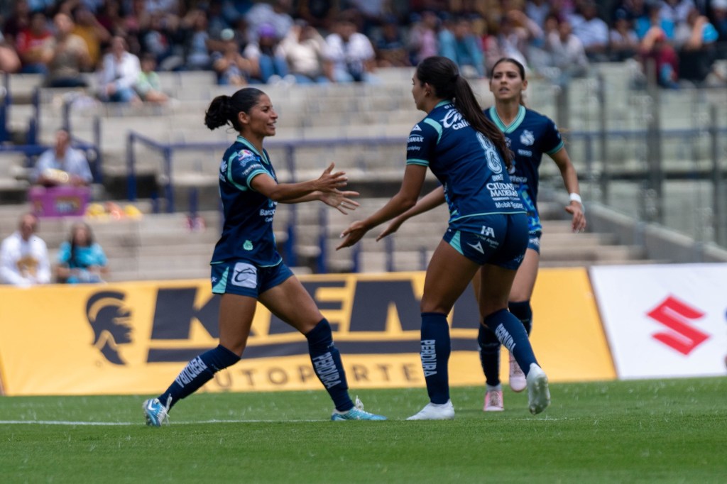 En el primer tiempo el conjunto de Marcelo Frigério dominó el partido, con llegadas constantes al arco de las poblanas. Después de varios remates, el primer tanto cayó en el minuto 6 y el segundo hasta el minuto 40, ambos por parte de Chavarin.