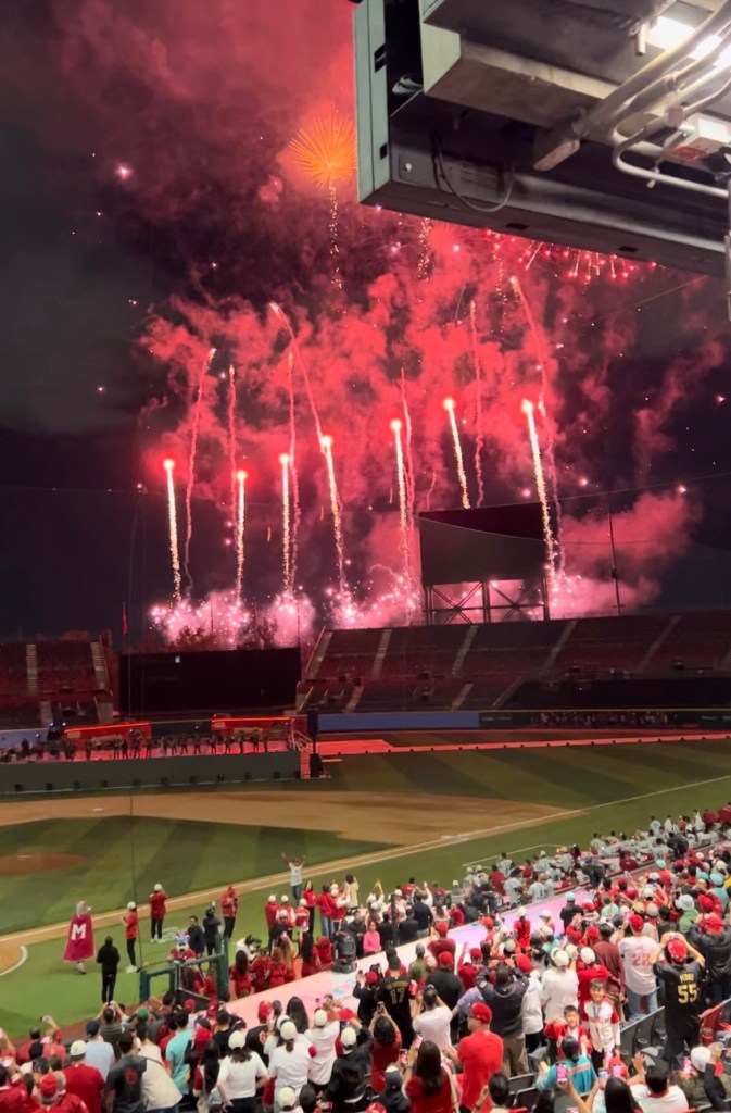 Posteriormente, durante la celebración, los fuegos artificiales se hicieron presente en el cielo, donde maravilló a los escarlatas que no paraban de festejar.