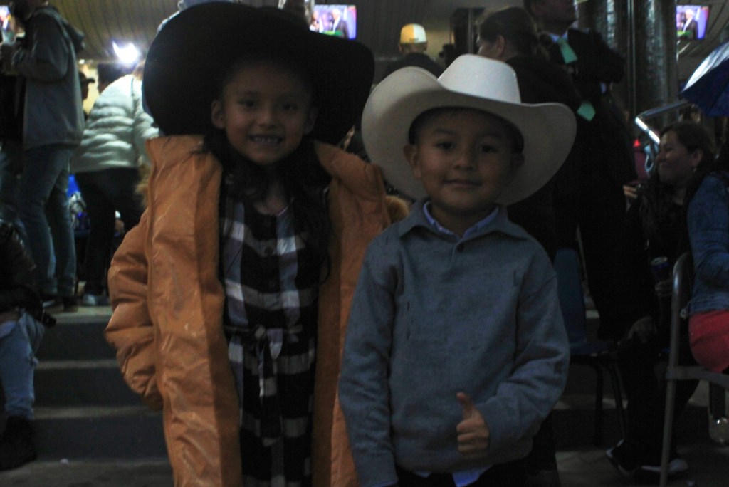 Con sus propios sombreros y botas vaqueras, estos pequeños parecen reflejar a sus padres, mientras corren por los pasillos y observan curiosos.