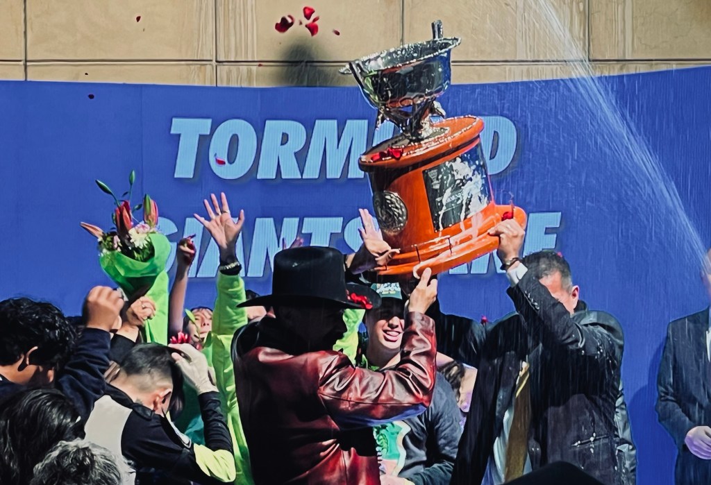 Mientras los demás caballos luchaban por el segundo lugar, Tormund y su jinete, Luis Villanueva, avanzaban solos, con determinación y aseguraron su victoria en el Handicap de las Américas 2024.