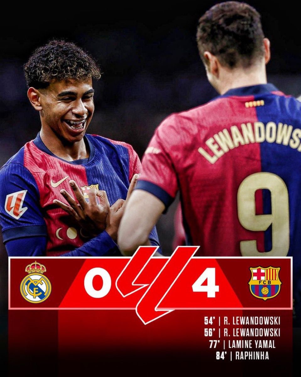 Desde la temporada 2021-2022 el equipo blaugrana no goleaba al Real Madrid con un mismo resultado de hoy y en el Santiago Bernabeu(0-4).
