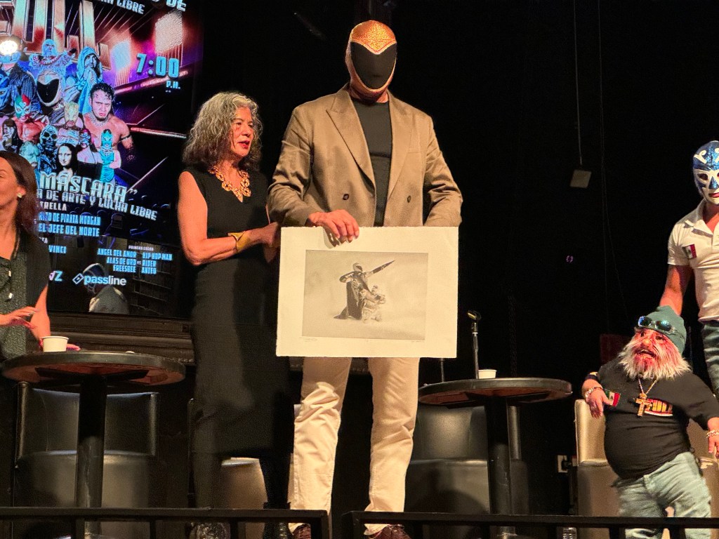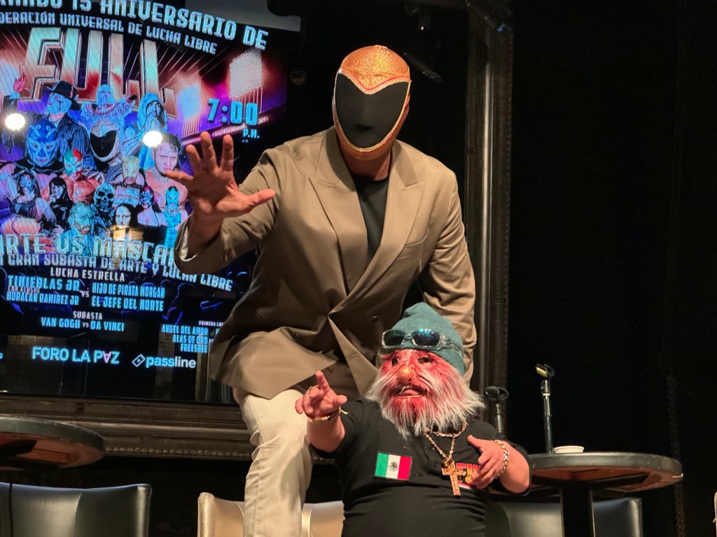 “Esto surge a partir de una sesión fotográfica que se llamaba ‘Máscara vs Cámara’ donde empezamos a hacer una colaboración o ensayo visual del cual no se había hecho un diseño de a donde queríamos llegar. Lo que uno necesita estar haciendo son nuevas metáforas, es decir nuevas maneras de ver la realidad y a veces la creatividad es cambiar algo de lugar desde una perspectiva distinta y eso es lo que estamos haciendo, un cambio de lugar desde el arte, la fotografía y la lucha libre, incluyendo que es una especie de teatro de la realidad”, explicó José Díaz.