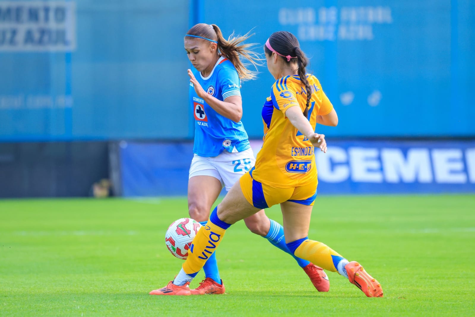 Ambas partes empezaron con hostilidades, con muchas ganas de poder escalar en la tabla, las Tigres intentaron dos trazos largos a la espalda de la defensa celeste con destino a Thembi Kgatlana, pero las zagueras cortaron, llegó la tercera y la vencida, las felinas se ponían en frente al marcador, todo esto en menos de 5 minutos.