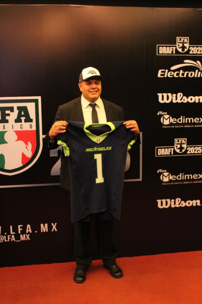 La Ciudad de México también estuvo presente en el Draft, pues los Mexicas, con un enfoque claro de fortalecer su ataque aéreo, eligieron al ala cerrada de los Borregos TEC CEM, un jugador que ha dejado huella con su gran agilidad y destreza para atrapar el balón y proteger al QB en momentos necesarios. Su capacidad para hacer recepciones será una pieza esencial en algunos partidos ajustados.