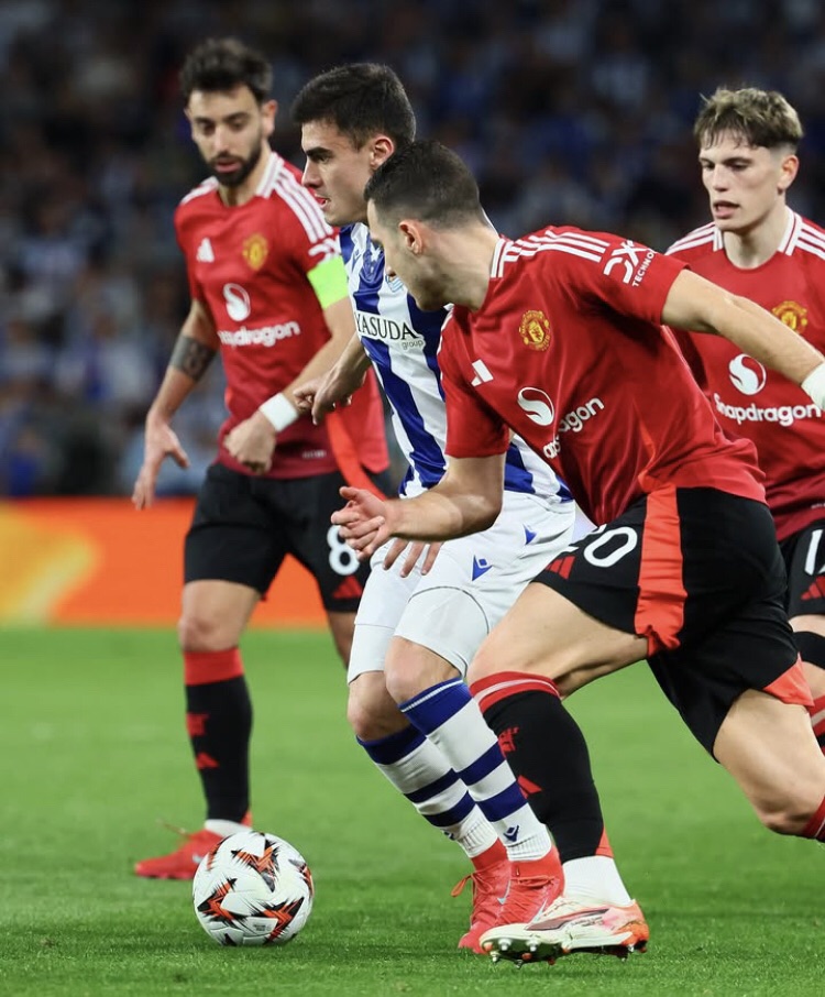 Desde el inicio, el United intentó imponer su ritmo. Joshua Zirkzee fue el más peligroso en ataque, mientras que Bruno Fernandes estuvo cerca de abrir el marcador, pero Aritz Elustondo despejó sobre la línea. La Real Sociedad resistió con orden y aprovechó la falta de claridad de los ingleses, un problema recurrente en los últimos años.