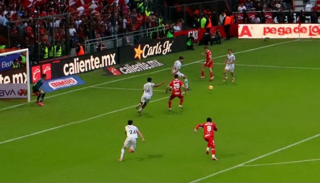 Era notorio que Toluca había cambiado de mentalidad, estaban dispuestos a conseguir la victoria sin importar la manera, inclusive con un penal, Antonio Briseño buscaba un tiro desde los 11 pasos con un clarísimo clavado, desde luego que la silbante lo notó y no marcó nada. Aun así el Pollo seguía buscando un gol, que consiguió el mismo con un remate de cabeza, le estaba dando momentáneamente el empate a su equipo en el minuto 53.