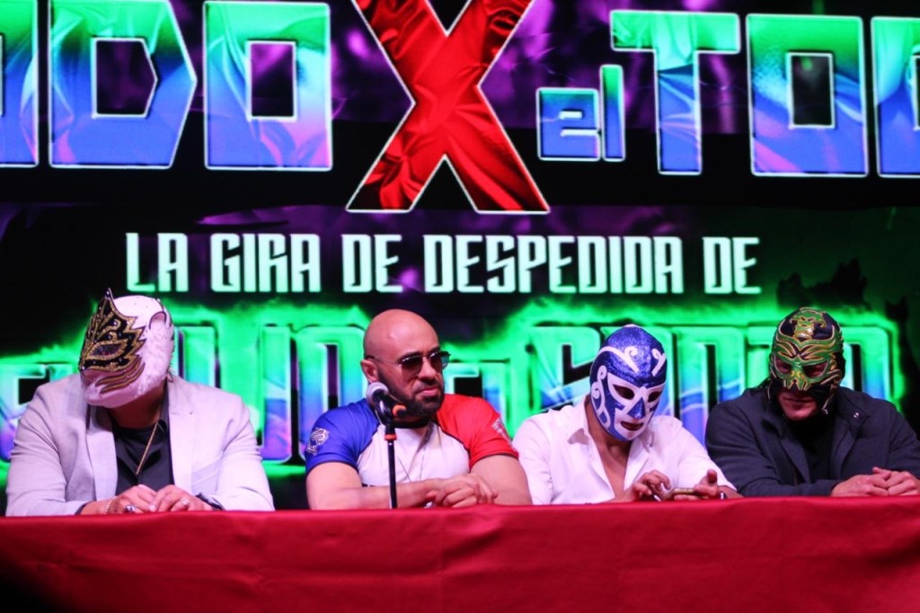 En su gira de despedida, el legendario luchador dió una conferencia de prensa en la cual anunció su cartelera el próximo 6 de abril en La Arena CDMX. El protagonista se colocó al centro de la mesa, a su derecha estuvo uno de sus máximos rivales, Fuerza Guerrera y del lado de su corazón, Santo Jr, su hijo y el heredero del trono que deja el enmascarado de plata.