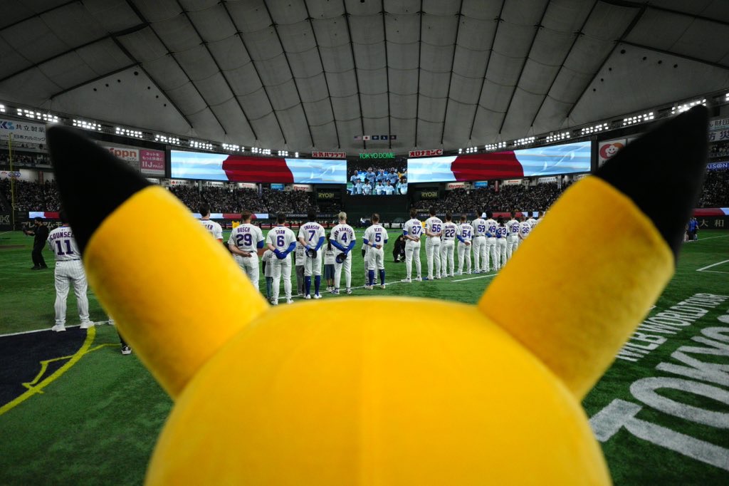 En un estadio lleno de historia y emociones, Chicago Cubs y Los Ángeles Dodgers dieron inicio con sabor muy especial a la Serie de Tokio, con un enfrentamiento de japoneses en el Tokyo Dome. En esta infraestructura se dió una introducción con un estilo muy japonés, ya que la temática fue de la famosa serie de anime, Pokemon, desde la presentación de grandes beisbolistas que hicieron historia en Japón, hasta nipones que han logrado hacer un gran papel en la MLB. Posteriormente, los jugadores salieron al campo junto el personaje más famoso de la serie, Pikachú.