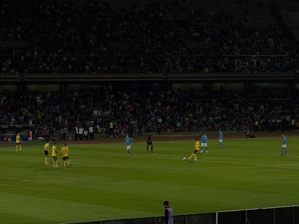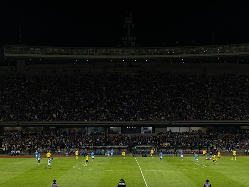 El público llegó poco a poco a sus asientos, y la planta baja comenzó a pintarse de amarillo. Había más aficionados americanistas que celestes, y eso se notó cuando los equipos salieron al campo.