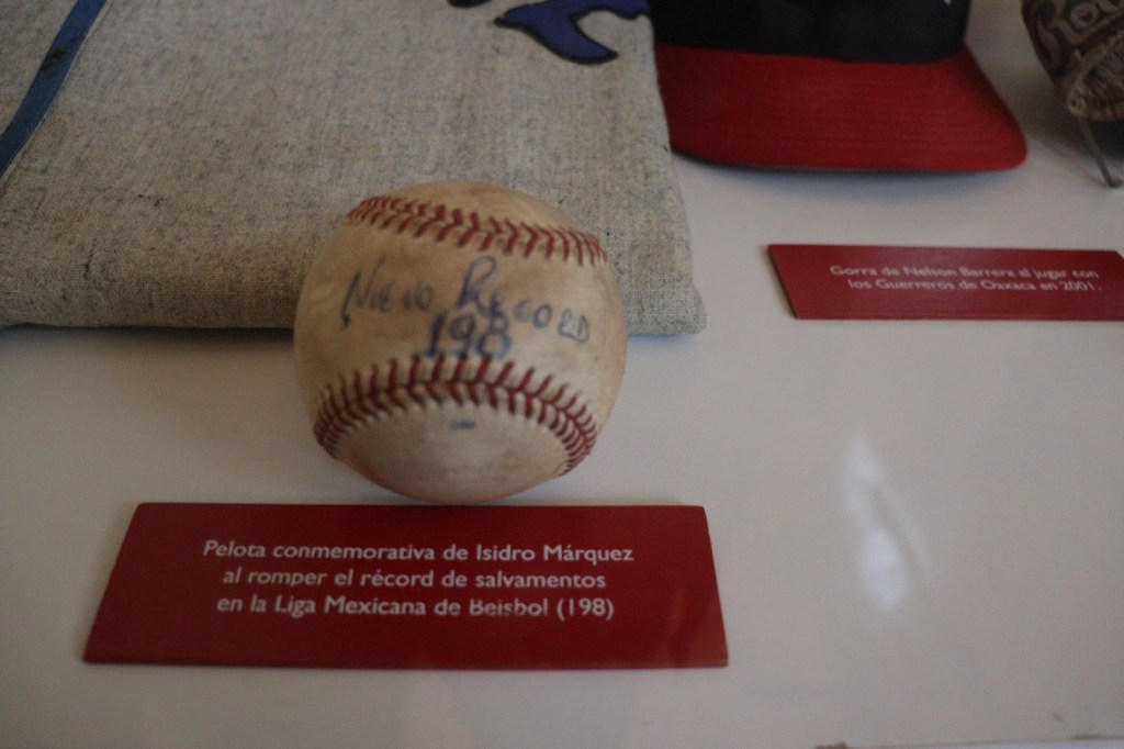 Entre estas joyas se destacan la pelota con la que Isidro “chilo” Márquez rompió el récord de más juegos salvados de por vida en la LMB (198), el guante que utilizó Luis Arredondo durante 14 temporadas, así como una gorra y bat utilizado por Nelson Barrera, un líder histórico de jonrones en la liga mexicana en sus últimos años con los Guerreros de Oaxaca, entre otros.