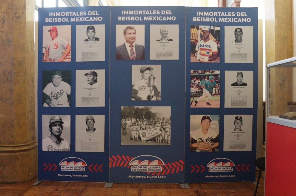 La exposición muestra 153 fotos de los “inmortales entronizados en el salón de la fama de béisbol mexicano”, en los que se encuentran; Fernando Valenzuela, Vicente Romo, Ricardo Sáenz, entre otros, así como 24 piezas que son las joyas de colección del salón de la fama.