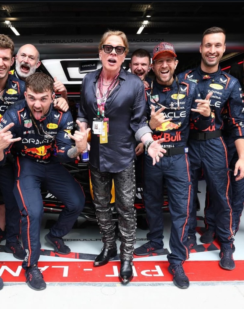 Red Bull no dejó pasar el momento y en redes sociales le dedicó un mensaje lleno de estilo: “Welcome to the garage, Axl Rose”, jugando con el título del clásico Welcome to the Jungle.