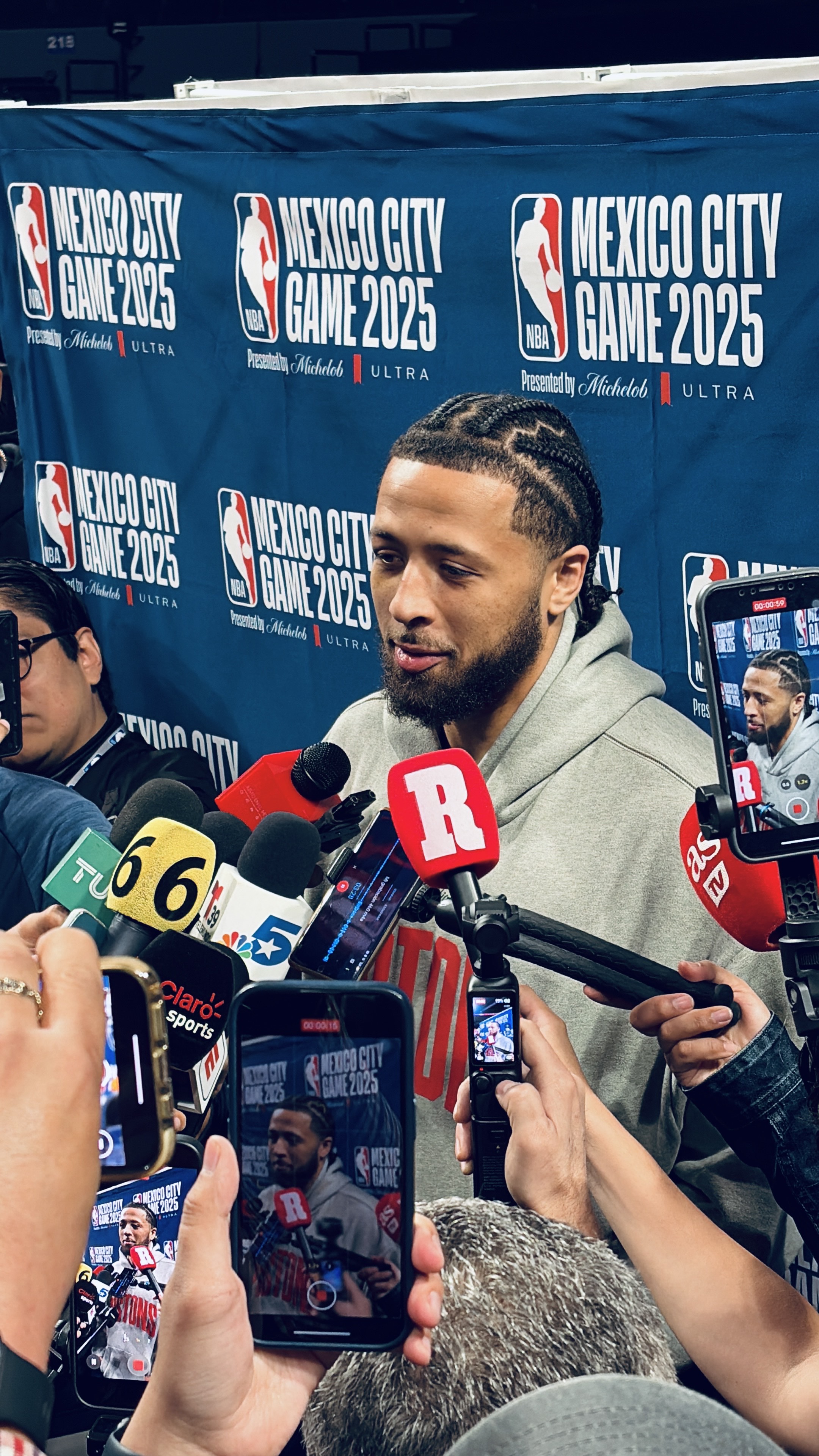 El foco de atención también estuvo en Cooper Flagg, el pick número uno del draft 2025. La futura promesa de los Mavericks dijo que estaba emocionado por este duelo en México y que está aprendiendo mucho de los jugadores que veía jugar cuando era niño; cuando se le preguntó si sabía algunas palabras en español respondió con un rotundo no.