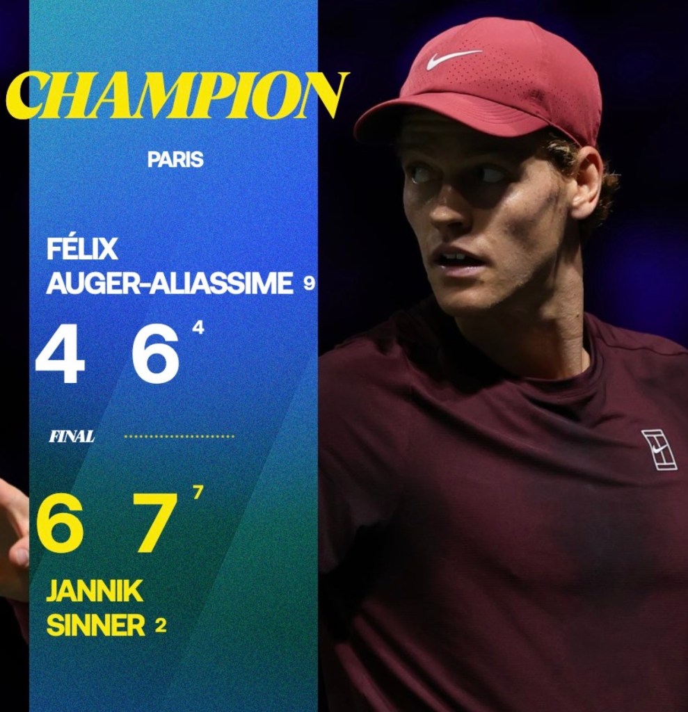 Sinner también confirmó su dominio bajo techo, alcanzando un impresionante registro de 26 victorias consecutivas bajo techo, una racha que lo pone en la mesa de tenistas que dominaba esta modalidad, omo Pete Sampras.