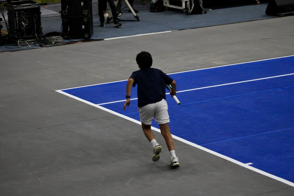 Y llegó su gran momento: Denis Shapovalov le otorgó su raqueta para jugar un punto contra el argentino Tomás Etcheverry, el cual ganó e hizo que la afición lo aclamara como si fuera un tenista profesional y ya consolidado.
