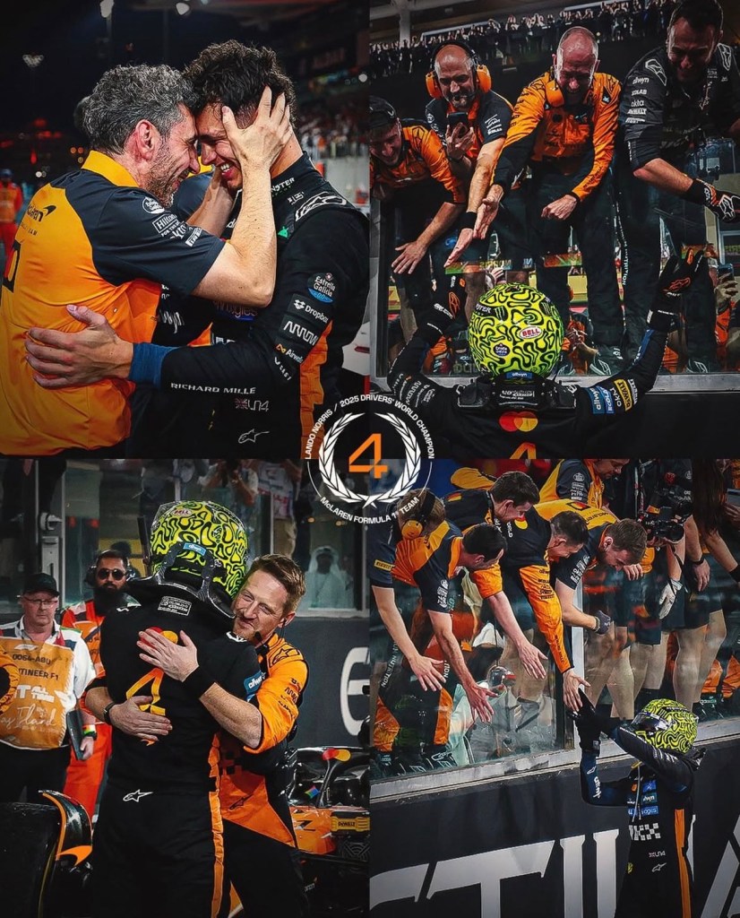 “Es difícil de procesar, ha sido una temporada larga, y es genial para mí que todo el mundo tenga esta recompensa. Lando y Oscar tuvieron grandes temporadas; los comentarios al final de la carrera cuentan la historia. Oscar le dio la enhorabuena a Lando, que ha estado ajustado toda la temporada. Lando agradeció entre lágrimas al equipo, y yo hago justo lo mismo. Gracias a todos, hombres y mujeres de McLaren que han trabajado tan duro para hacer esto posible. Lo hemos hecho en un tiempo récord: éramos últimos hace tres años.”