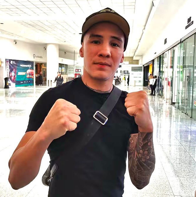 Oscar Valdez en su arribo a la Ciudad de México. Foto por: Emilio Galicia.
