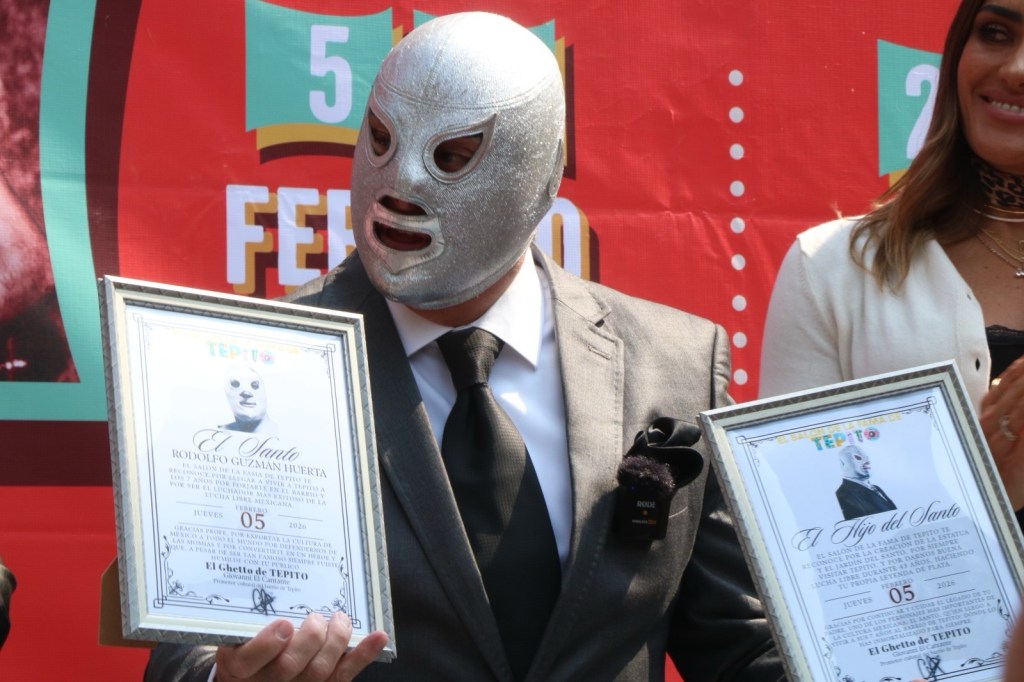 Después de que Jorge Guzmán Rodríguez y la alcaldesa dedicaran unas palabras al cielo, llegó un originario de Tepito con una idea exclusiva para otorgarle tanto al padre como al hijo un lugar en el Salón de la Fama de Tepito. “Es un barrio de historia, cultura y talento. Tenemos un proyecto hecho por el barrio de Tepito y queremos reconocer al Hijo del Santo en el Salón de la Fama”.