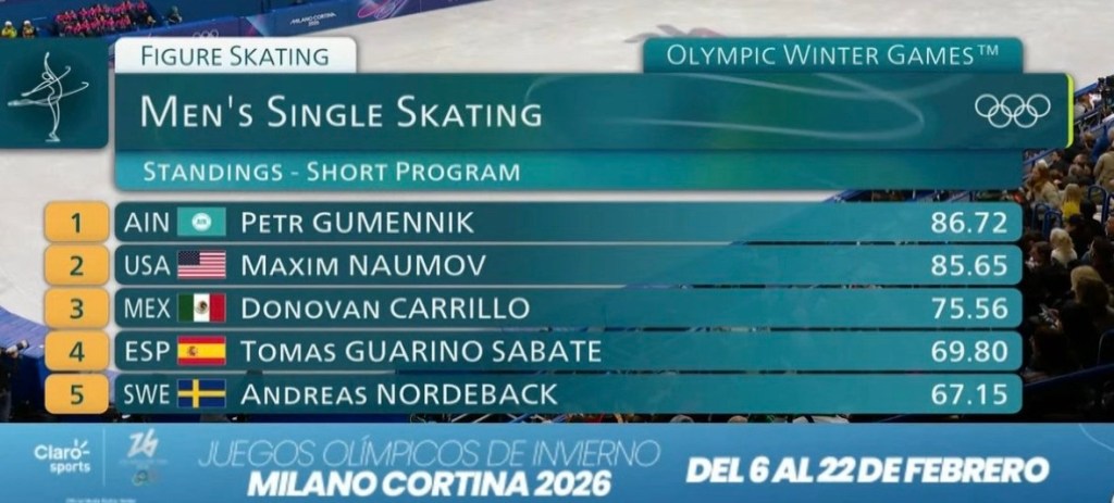 Minutos después, los resultados confirmaron su pase al programa libre. Donovan Carrillo volvió a romper barreras y aseguró su lugar entre los mejores del mundo, dejando claro que su historia sobre el hielo continúa escribiéndose con México brillando a su lado.
