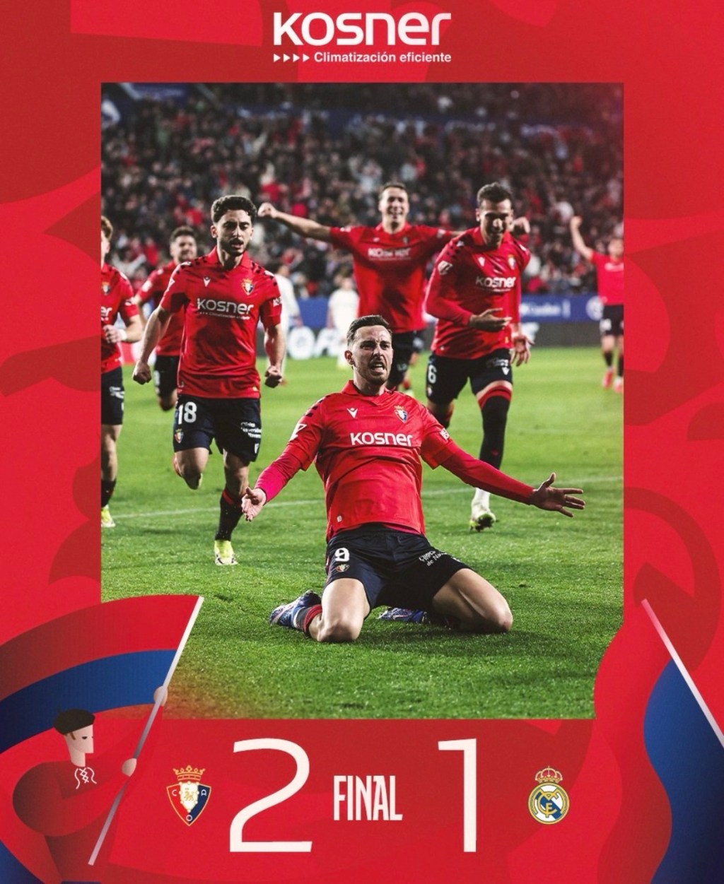 Con base a las oportunidades creadas, el Real Madrid merecía más de ese partido, pero, el futbol no es de merecer, es de hacer goles, y sobre el final del encuentro, Raúl Moro filtró el pase milimétrico para Raúl García que entró al área, hizo un recorte que dejó a Alexander Arnold en el piso para definir a segundo poste frente a uno de los mejores porteros del mundo. Con esto el 9 del Osasuna consiguió su quinto gol en la campaña y le dio la victoria a su equipo frente a uno de los gigantes de Europa.