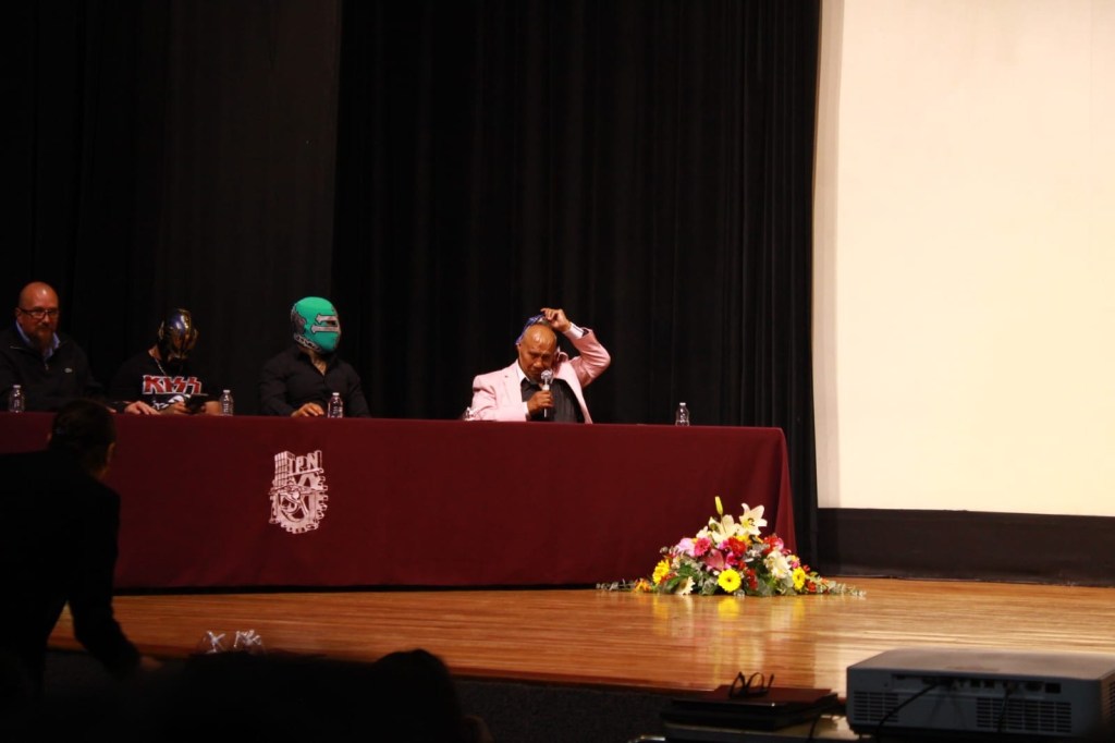 Mientras daban el cierre de la plática, una voz interrumpió al presentador. Era la leyenda Villano IV. Entre valentía, miedo y orgullo pidió la palabra: ”En 2022 perdí mi máscara en Triplemanía XXX… así que por respeto a ustedes”.