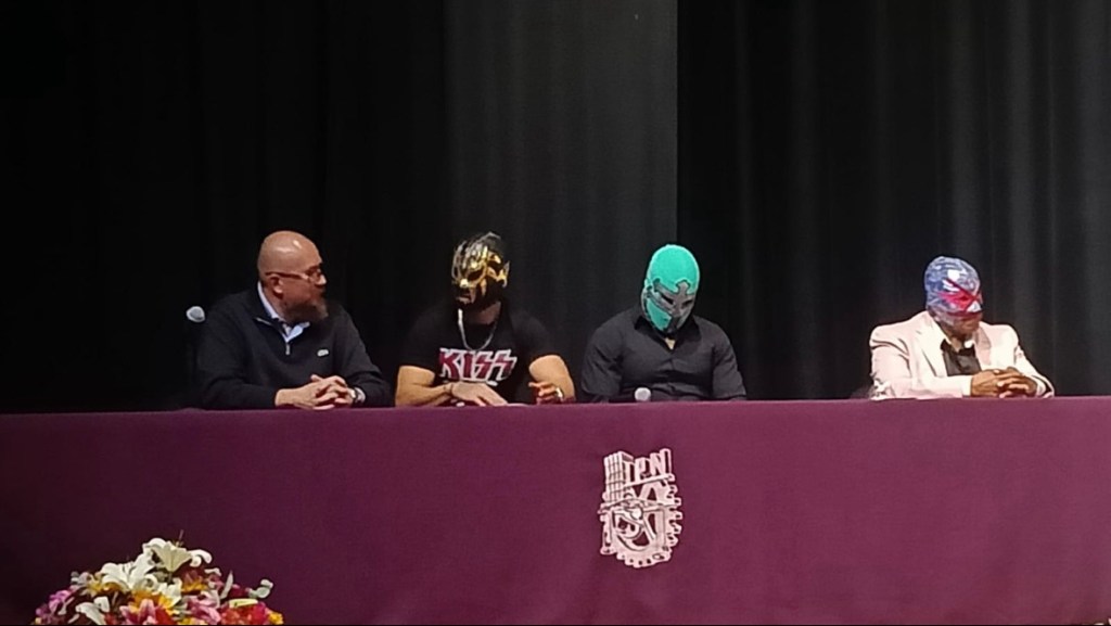 Un ídolo ganándose el respeto de sus oyentes. Eso fue lo que se vivió en la conferencia de medicina en el deporte, en el Instituto Politécnico Nacional, donde fueron invitados los luchadores: Villano IV, Templario y Oro Jr.