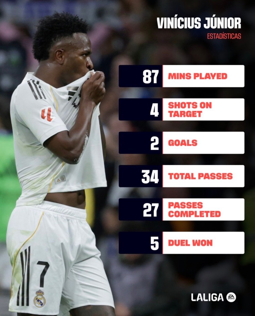 El gran momento que vive Vinicius no es casualidad, entre semana, en la Champions League, también marcó dos goles contra el Manchester City para eliminarlos.