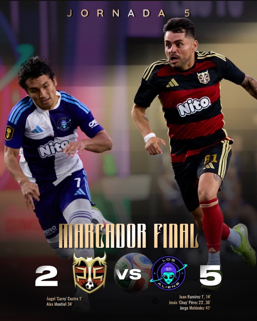 El momento llegó, Álvaro Morales fiel a su personaje mostraba un semblante de firmeza, seguridad y confianza, que se vio nublado a los 20 segundos del encuentro con la primera anotación de Aliens, que sería solo el principio de la escandalosa derrota que culminaría con un marcador de 5-2 en contra de Peluche Caligari.