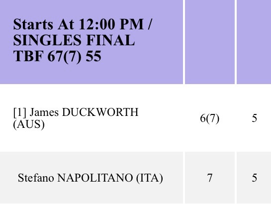 Mientras se disputaba el duelo entre James Duckworth y Stefano Napolitano, las condiciones climáticas obligaron a suspender el encuentro cuando apenas comenzaba el segundo set, en medio de un ambiente cambiante y poco habitual para esta época del año.